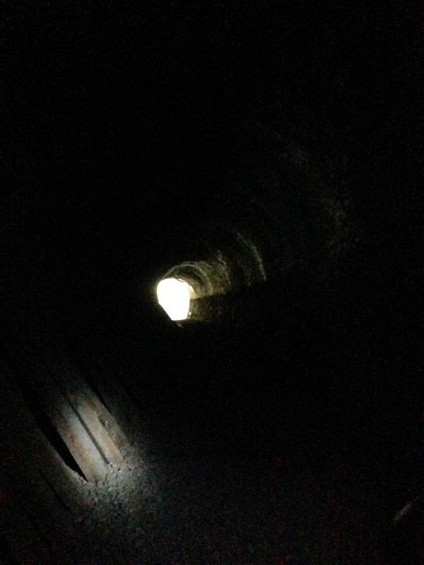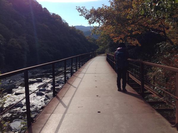 快晴で少し暖かいかなと思いましたが、渓谷の中、トンネルの中で、なかなか体があったまりません。ダウンジャケットなどの防寒着は必須です。ウールアンダーに薄手フリースで、ある程度体が温まるまではダウンのまま歩き、その後に風よけのジャケットに着替えました。休憩時はすぐに体が冷えるのでダウンに着替えます。