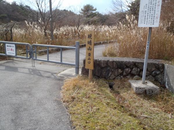 ホテル リラクシアからすぐのゲート付近に「暁晴山・砥峰高原」と書かれた看板があります。
