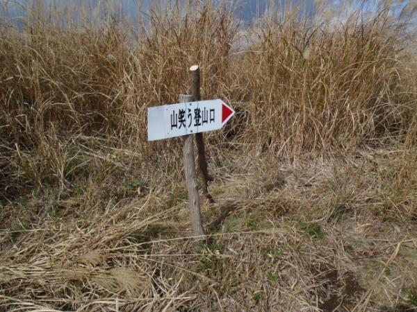山頂から5分ほど下ると「山笑う登山口」との分岐があります。