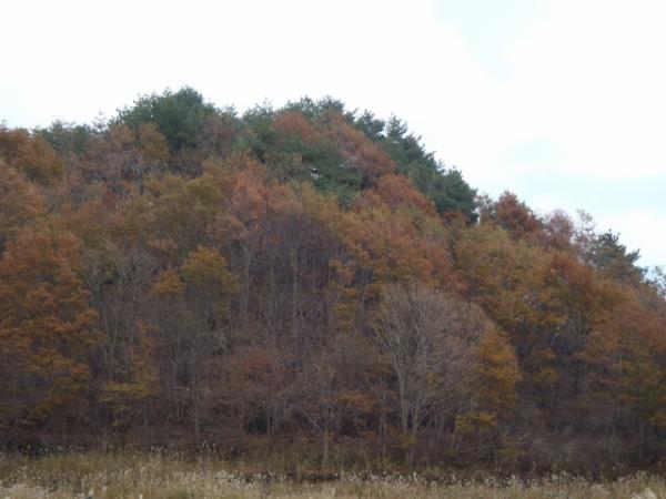 下山はこの林の中を歩くコースを辿りました。 要所にピンクのテープがありますので