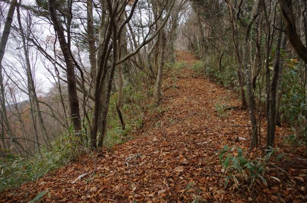 尾根上には踏み跡が有ります、1000mラインからはハッキリした道が有りますが、一部少しだけ薮が有ります、尾根に沿って登れば間違いがありませんが、案内板は全く有りません