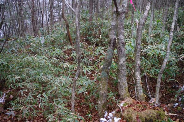下山は尾根が入り組んでいるので目印を付けてください。