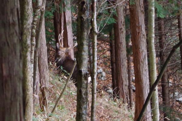 天狗森山には林道ゲートから林道を一時間程歩いて、槇平営林小屋上部から入りますが、今日は林道工事の為、急遽、マル秘のルートで登る事にしました