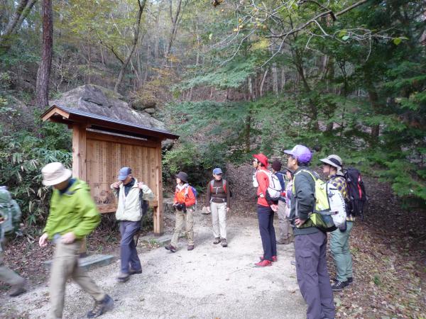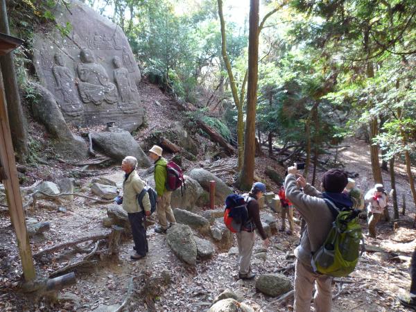 - JR草津駅バス停⇒上桐生バス停(30分)⇒登山口(5分)⇒落ヶ滝(60分)⇒天狗岩(80分)⇒竜王山(40分)⇒狛坂磨崖仏(45分)⇒逆さ観音(60分)⇒登山口(20分)