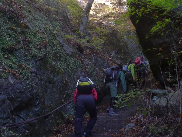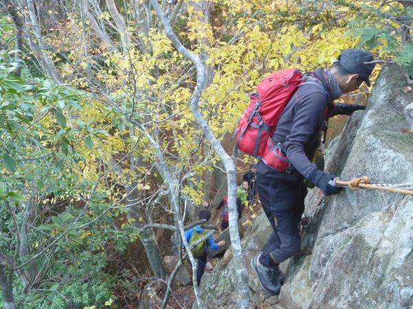 鎖場やロープが設置された岩稜帯もあり、危険個所の歩き方を学ぶには
