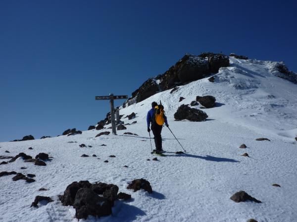 山頂近くから徐々に風が強くなり、安達太良の本性を垣間見ることができます。雪も徐々に“絞まって”きます。山頂付近はアイゼンがよく効きます。