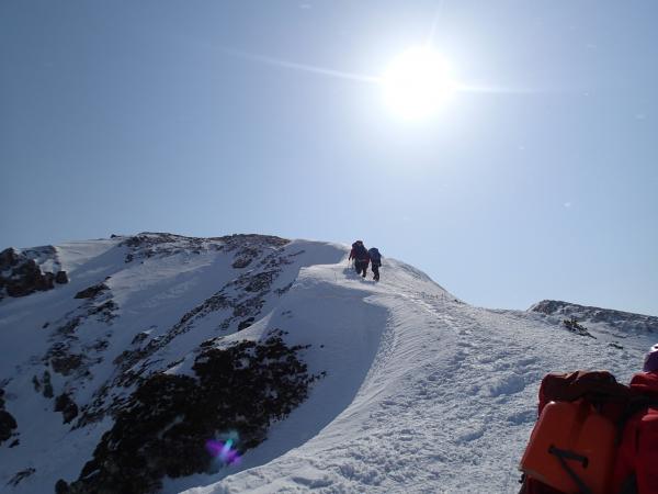 剱御前までは強風のために途中、笹倉ガイドにアンザイレンをしていただきました。