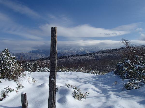 雪の取立山山頂から白山