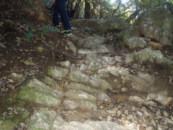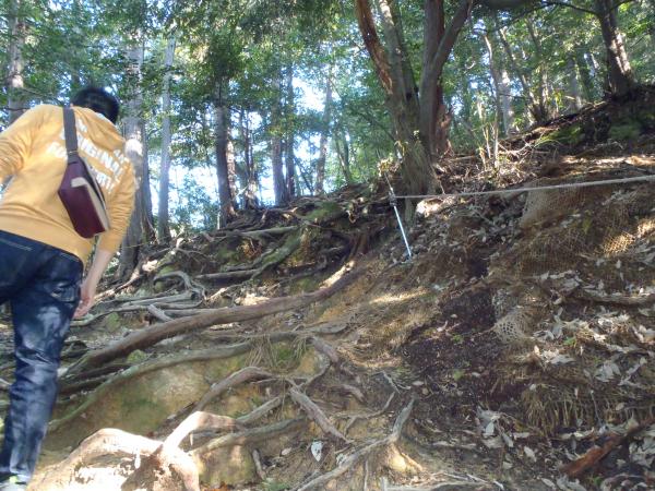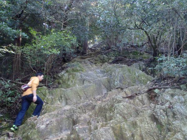 ロープーウェイを利用すれば簡単に頂上に立つことができますが、今回は馬ノ背登山道を登りました。このコースは金華山の北西の尾根を頂上に向けて直登するルートで、むき出しの岩肌や細かい足場の連続で滑落に細心の注意が必要です。アプローチシューズだと快適に登山が楽しめると思います。