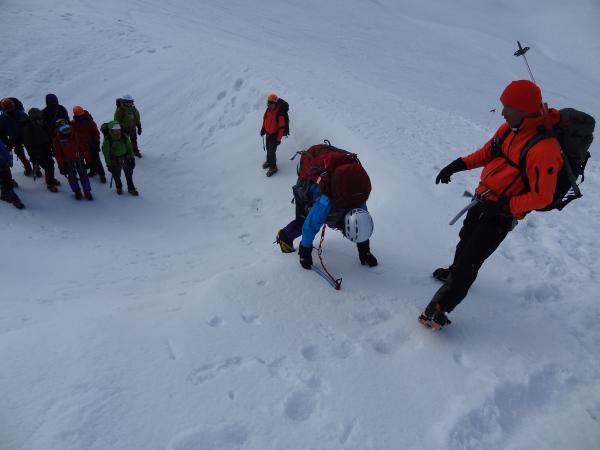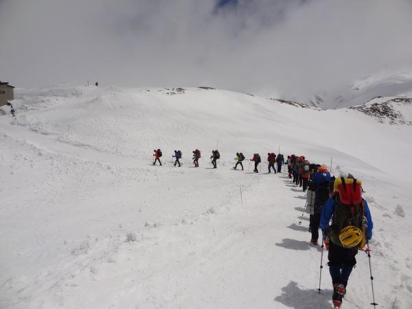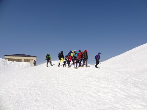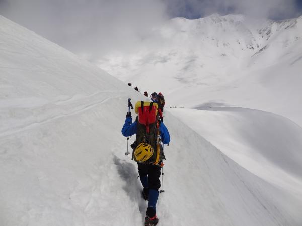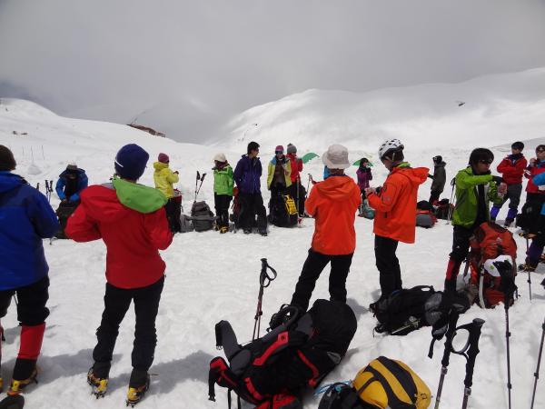朝から雷鳥沢~剱御前小舎にて雪上訓練を行いました。下山時にはビーコンの捜索・救助練習を