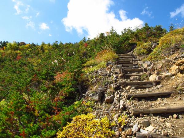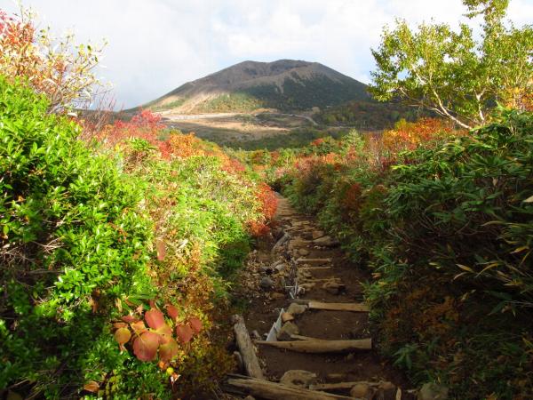 - 登りやすい木道の整備されたところも多い道を歩きます。時期のよっては火山活動の関係で立ち入り禁止の道があります。