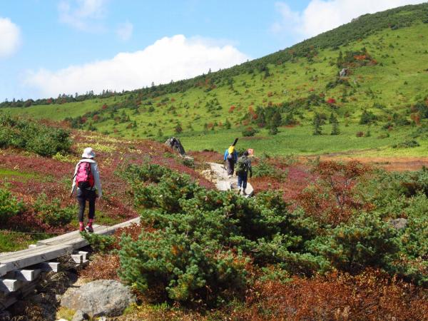 下界ではまだまだ暑いのですが、浄土平で車を降りると東吾妻山はすっかり色づき、半袖ではいられません。油断しないで準備しましょう。