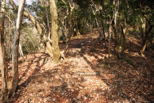 - 筑紫宮からの周回コース、西側のルートは整備された階段状の登山道が山頂まで続いていて歩きやすいです。