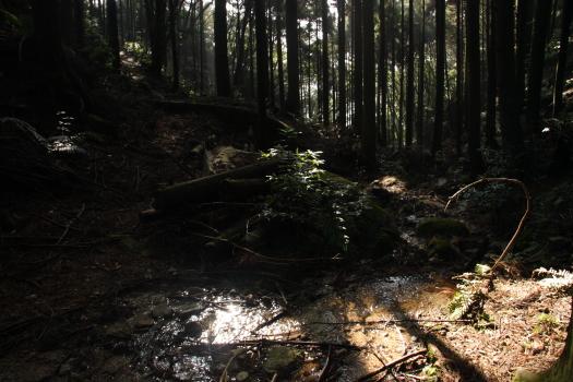 東側のルートはすべりやすい岩やロープが張り巡らされた急坂がでてくるので登りがいがあります。