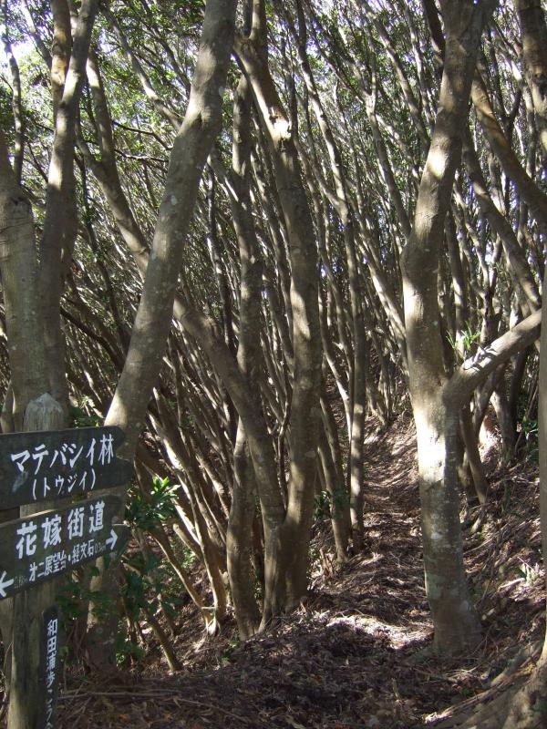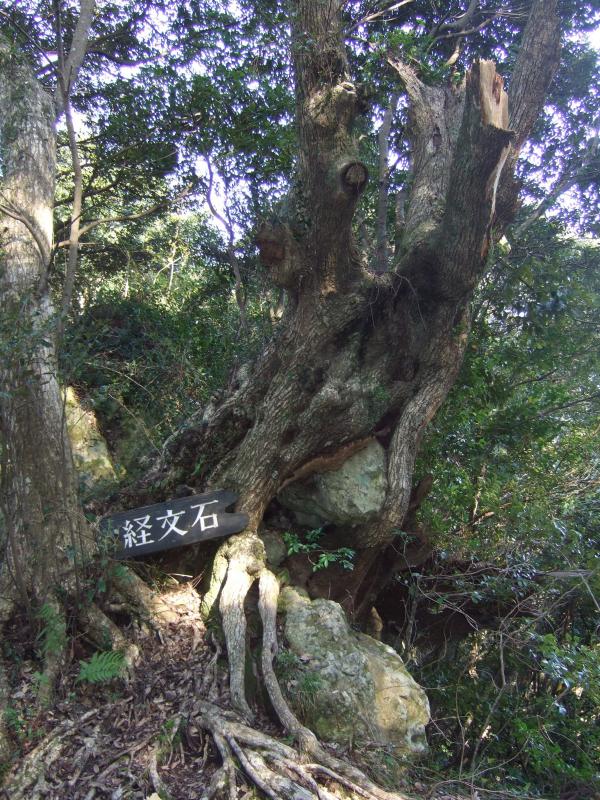 山頂では花嫁の石造が出迎えてくれます。眺めも良い山頂でした。そこから花嫁街道を下っていきます。途中に幾つかの展望台があり房総の山が眺めることが出来ます。経文石は石と木が不思議な感覚を醸し出していました。マテバシイの中を歩くのは爽快で気持ち良かったです。