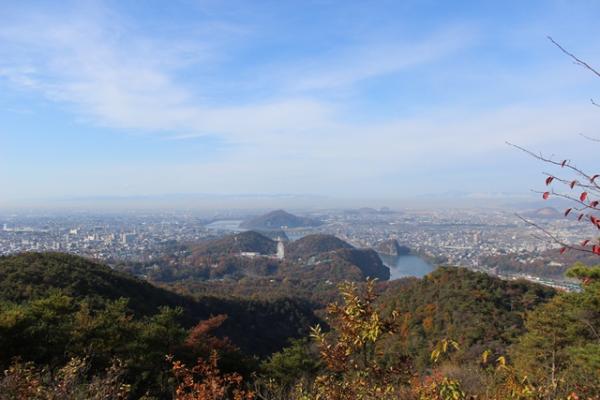 山頂の休憩舎からの展望は良く遠くには伊吹山も見えます。