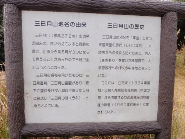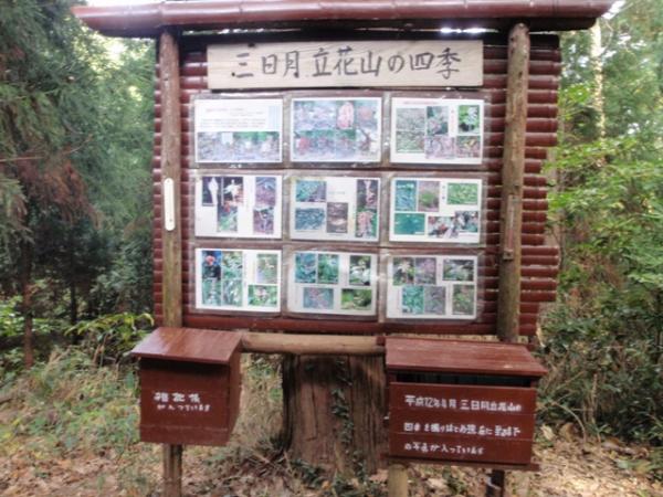 - 下原バス停(20分)-登山口-(40分)-三日月山-(40分)-立花山-(30分)-下山口