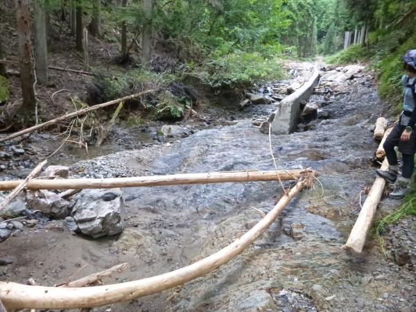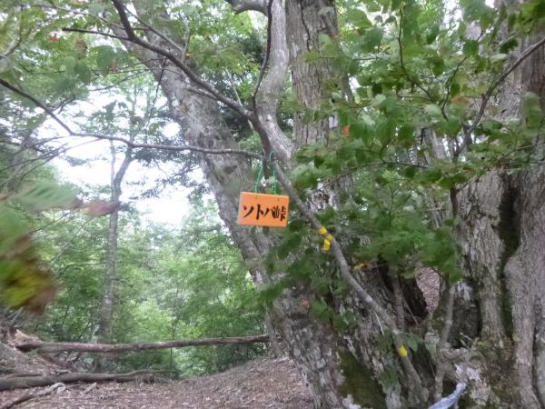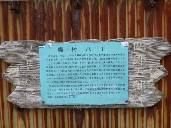 - 東谷駐車ポイント(45分)ソトバ山看板(10分)ソトバ峠(75分)廃村八丁(60分)刑部谷(40分)廃村八丁(60分)ソトバ峠(30分)駐車ポイント