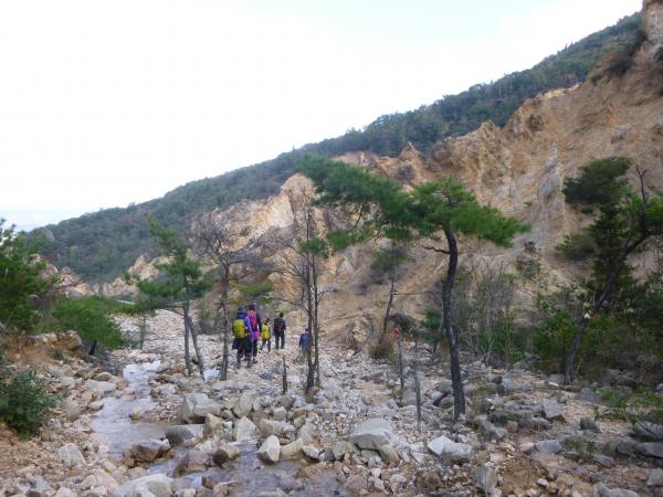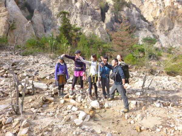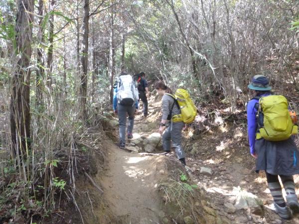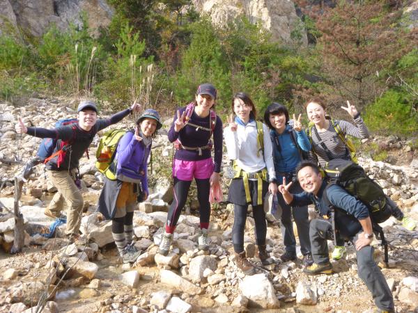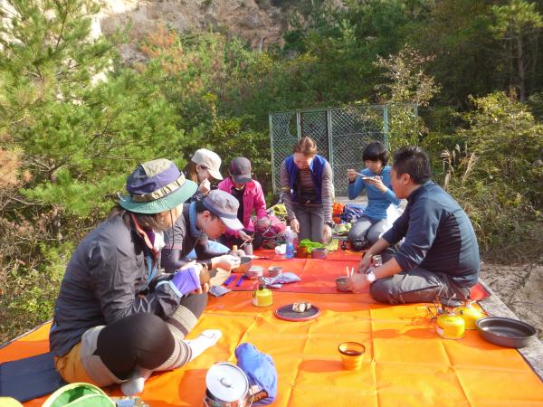 全山縦走路の終点から蓬莱峡に向かい、日当たりの良い広い堰堤でおやつタイム。ぜんざいを作ってバスの時間までのんびり過ごせました。 大平山からはルートの見落としに注意が必要です。できればGPSの携行をおすすめします。