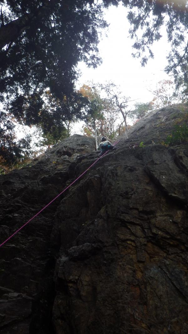 当日は午後から雨との予報。今日は初心者もいるし(私です^_^;)のんびり楽しくやりましょー!・・・そんなんで始まったクライミング。まずはルート、というより岩を楽しむって事でレベル云々ではなく。