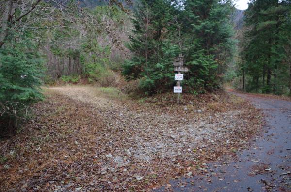 - ゲート前駐車場(20M)登山口(40M)上の林道出会い(60M)林道最終地点小屋(70M)奥三界岳(120M)ゲート前駐車場