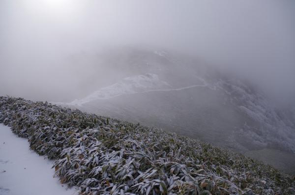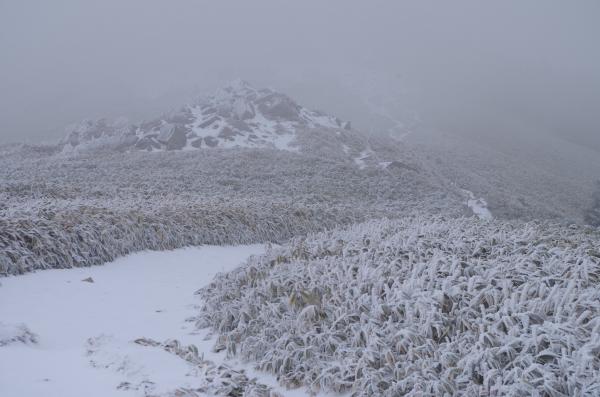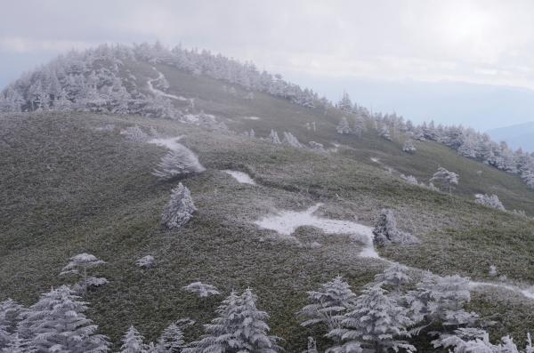 1500mラインは霧氷で、上部は樹氷でした、非常に風雪が強くて、完全な冬の防寒着が必要です