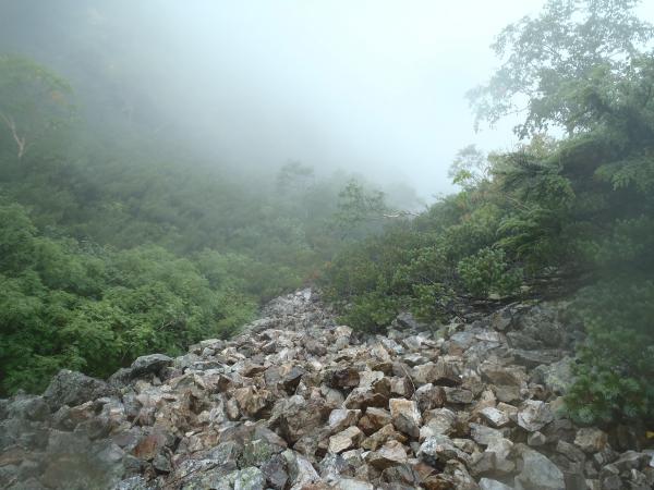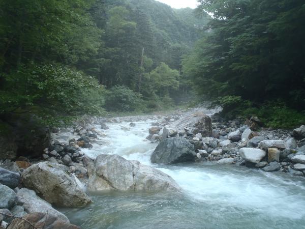 2日目は晴れの予報が出ていたので、雨上がりの貧乏沢はなんとか降り切って2日目を楽にしようと判断ミスがあり、増水した貧乏沢でてて手こずり、体力と気力を持っていかれ、北鎌沢を見上げて敗退という結果になった。