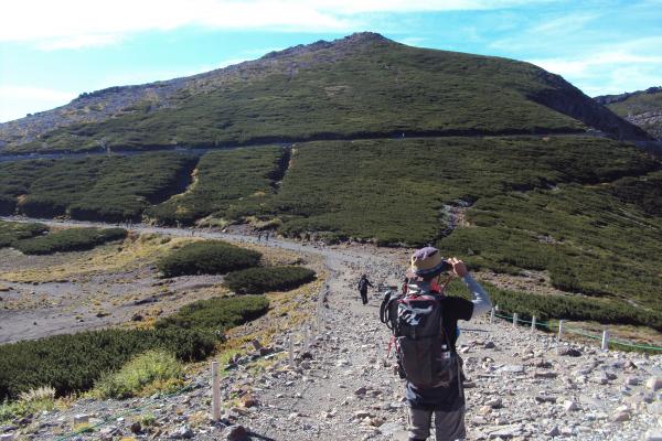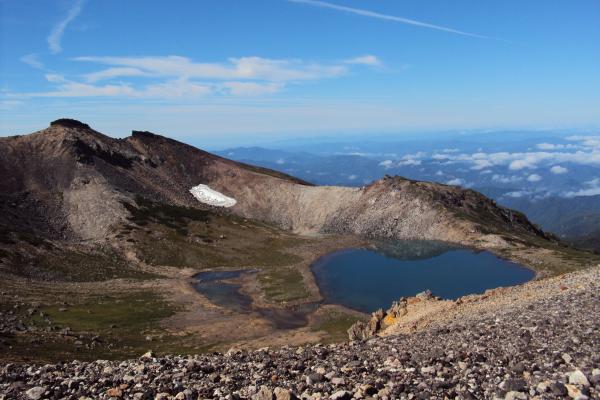 夜行バスから電車、そしてバスと移動を重ねることを前提にして行けば、日帰り登山としてはかなりサクサク行くことのできる山です。天候は絶好調の快晴、頂上付近の360度のパノラマは最高です。ところどころにある湖も癒されます。