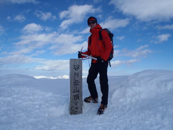 山頂付近は正午で時計の温度計は―3度でした。万全の寒さ対策、ピッケル、10本爪以上のアイゼン、雪山に対応した登山靴が必要です。