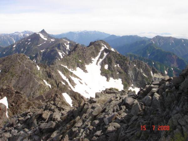 - 穂高岳山荘(30分)奥穂高岳(150分)天狗のコル(60分)天狗岳(35分)間ノ岳(60分)西穂高岳(25分)天狗岳(35分)天狗のコル(100分)奥穂高岳(35分)穂高岳山荘(テン場)