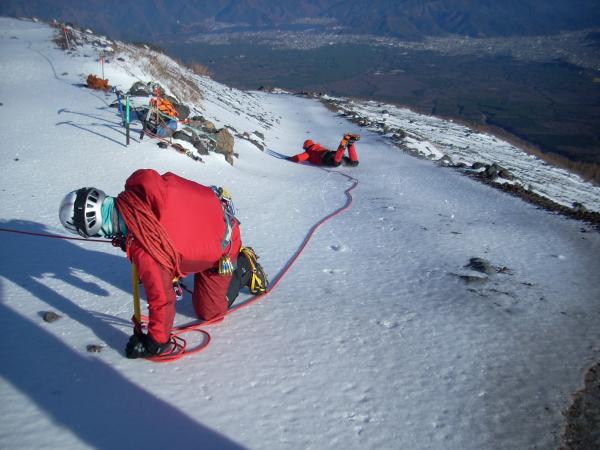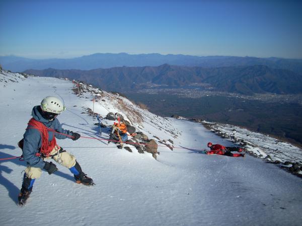 例年に比べて雪が少なく登山道を使って訓練を行いました。