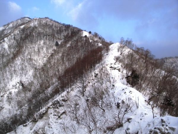途中、夏道を外れ阿世潟峠の少し西の小ピークにあがり、尾根伝いに社山を目指すと