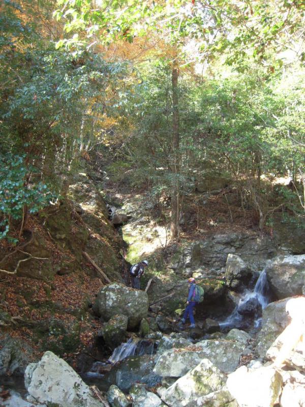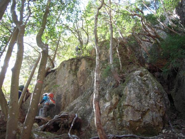 下山ルートは湿っていて岩が滑りやすくなっています。
