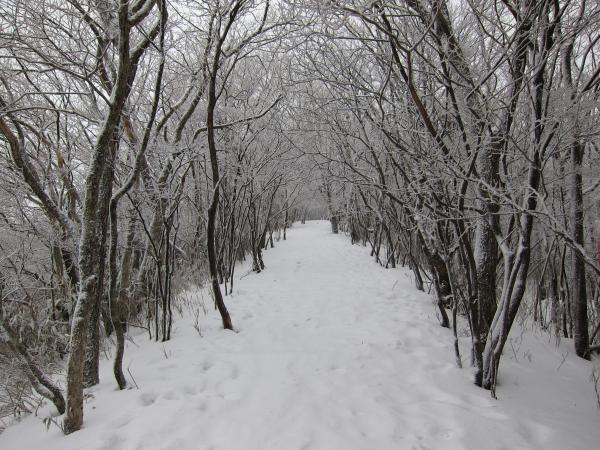 登山道はなだらかでスノーシューにもってこいの感じですね。天気がいまいちだったので龍神岳までにしましたが、もう少し先の耳取山まで歩いてもいいと思います。