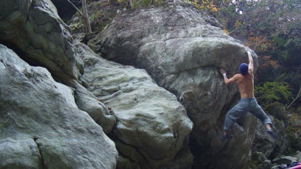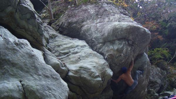 天気も良くかなり登りやすい気候だった。しかし、渓谷のため正午をすぎたあたりから日差しが届かなくなり、岩が結露しはじめ、フリクションはイマイチに。