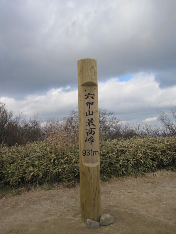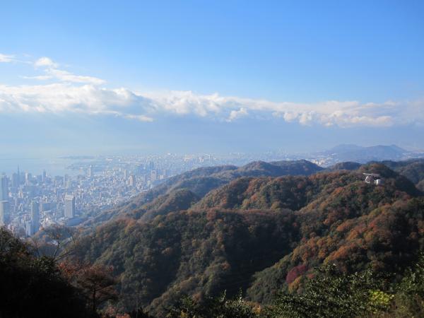 - 新神戸駅→(45分)→東山→(30分)→天狗道学校林道分岐→(45分)→摩耶山山頂→(25分)→掬星台→(60分)→三国池→(15分)→丁字ケ辻→(15分)→記念碑台→(45分)→六甲ガーデンテラス→(50分)→六甲山山頂→(80分)→大平山→(6分)→大谷乗越→(50分)→塩尾寺→(35分)→宝塚駅