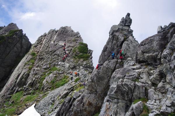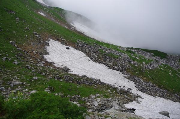 - 30~50mほどの雪渓を2箇所通りました。足場を切ってあるのでアイゼンなしで渡れましたが、軽アイゼンを用意しておいた方が良いでしょう。