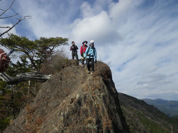 - 和市駐車場(30)堤石峠(120)ナイフリッジ(20)山頂(5)大神田分岐(25)ベンチのある休憩ポイント