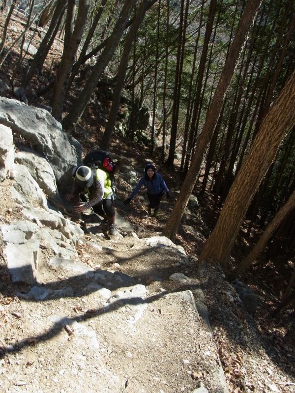 登り始めてから1時間は急登が続き危険です。特に下山が危険なのでトレッキングポールがあると便利です。また目印の赤いロープも数が少ないので道迷いに注意が必要です。