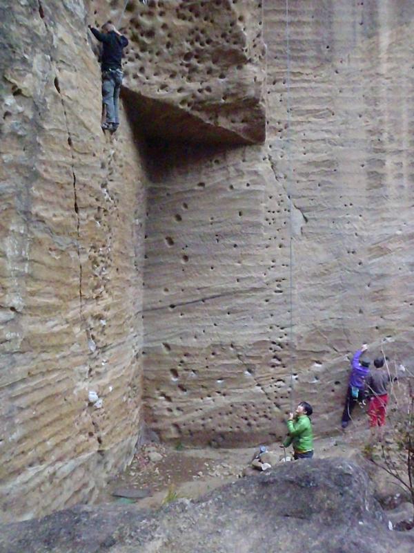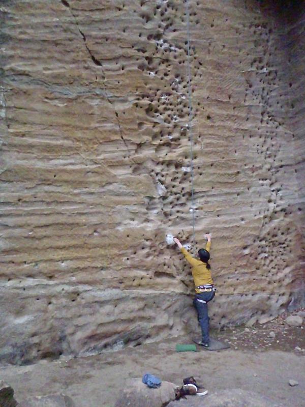 出産してから初めての、久しぶりのクライミングでした。慣らしなので、簡単なコースをと思っていたのですが、鷹取は普通の岩壁とは見た目もホールドも全然違うので、かなり苦戦してしまいました。