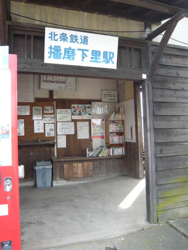 ため池や切り立った岩肌、田んぼ・・・北条鉄道の線路がほぼまっすぐに伸びててジオラマみたいです。