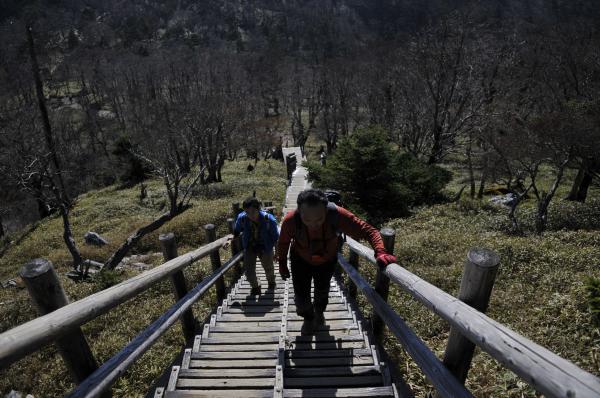 日出ヶ岳周辺の登りは、階段で整備されているので、初心者の方でも登りやすくなっています。