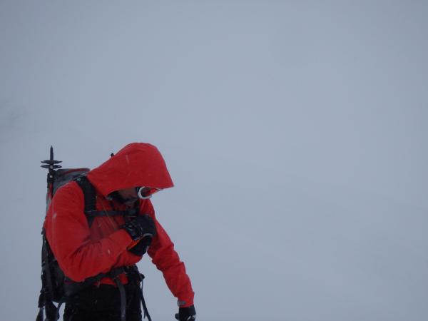 連休明けということでトレースはばっちりだと思っておりましたが、6合目より上はラッセルと強風とホワイトアウトで悪天候時は適切な判断が必要です。