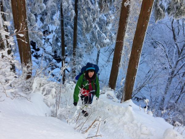 沢を渡ったり、沢沿いの急斜面をトラバースするので