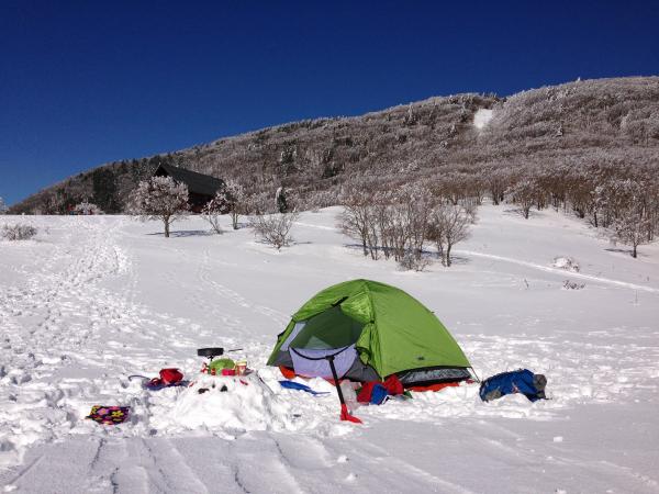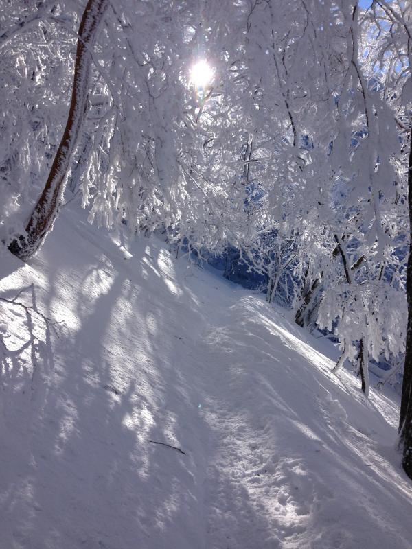 登山口の時点で20cmほど、明神平付近はひざまでしっかりです!