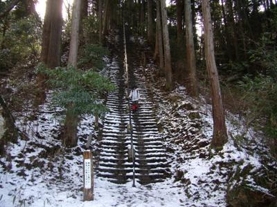 - 14日に降った雪が登山道に残っており、妙見山から本瀧寺までは滑りやすく、階段は注意してください。