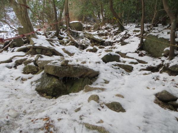 - 小つらら手前より上の登山道は、圧雪・アイスバーンの雪道でしたので、6本の軽アイゼンは必携です。ダブルストックがあるとより安心です。12/30現在、大つららの氷結は発達中で、まだ、内部では水の流れる音が聞こえていました。今後の冷え込みに期待したいです。
