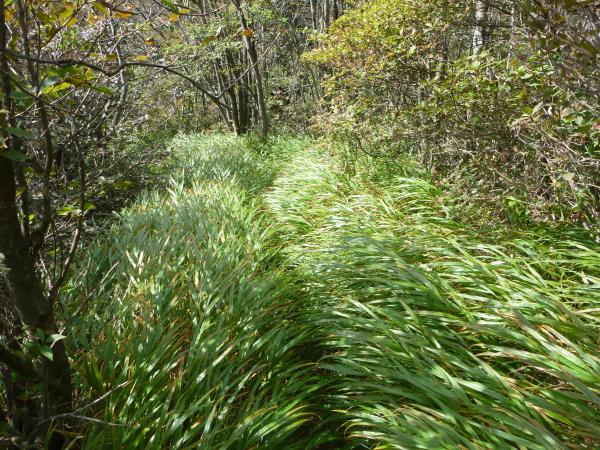登山道沿いに、フジアザミなどのトゲのある植物が多く、しょっちゅう肌に引っかかって痛かったので、あまり肌は出さない服装の方がいいでしょう。