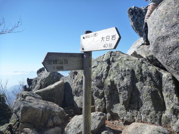 -金峰山山頂-(80分)-大日岩-(25分)-大日小屋-(40分)-富士見平小屋-(35分)