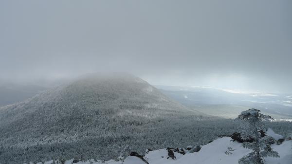 やっぱりロープウェイ山頂駅に着いたら雪が降ってて真っ白。